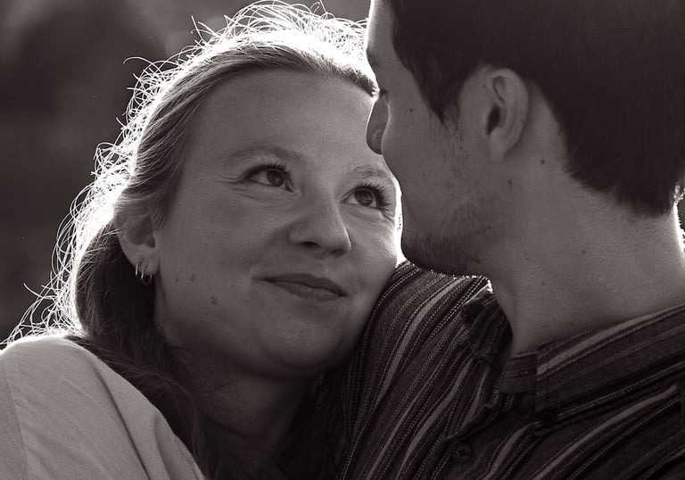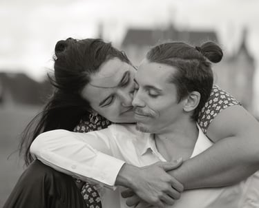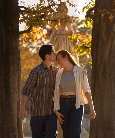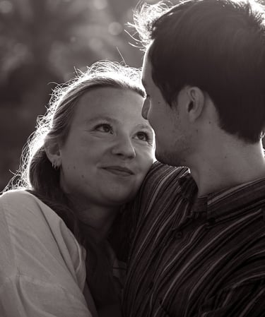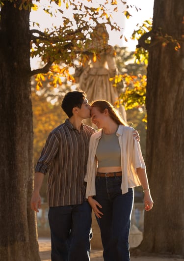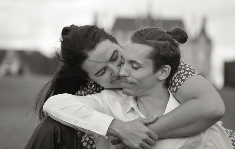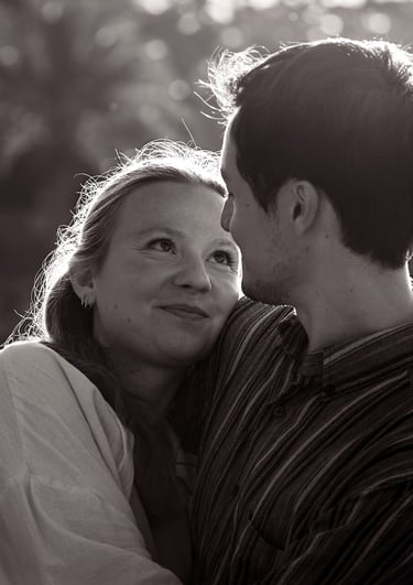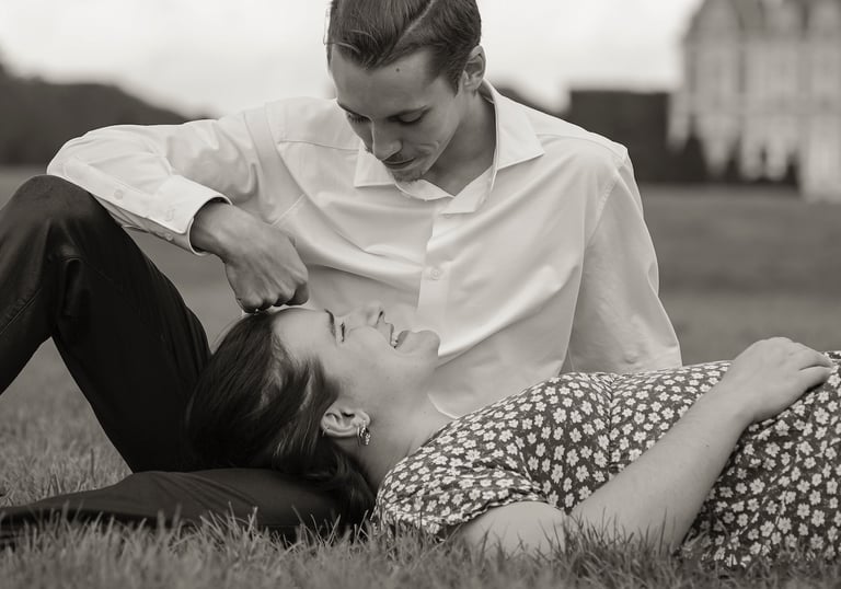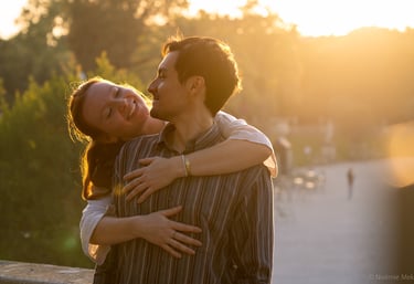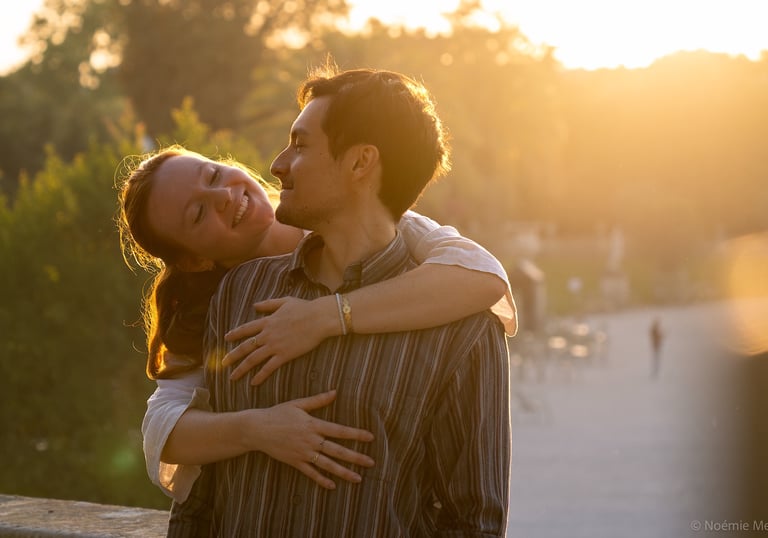 Je vous propose des séances photo en extérieur, en lumière naturelle, pour capturer votre complicité, vos regards, vos gestes tendres ou vos fous rires.